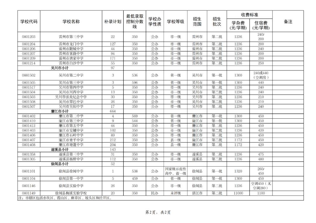 我市2025年普通高中学校和试点中职学校“中职贯通班”第一阶段录取工作已结束。目前尚有部分普通高中学校和试点中职学校“中本贯通班”未完成招生任务(含注册报到规定期限过后有计划缺额的普通高中学校和中职学校“中本贯通班”)。根据《关于做好2025年初中学业水平考试与高中阶段学校招生工作的通知》(湛教函〔2025〕83号)、《关于做好2025年普通高中学校招生录取工作的通知》(湛教函〔2025〕147号)要求,经各县(市、区)教育局和市直属有关高中阶段学校审定上报、市教育局汇总,形成了2025年秋季湛江市高中阶段学校补录招生计划,现予以公布。