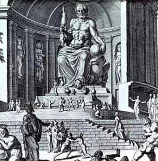 奥林匹亚宙斯神像:高达12米的黄金象牙雕像,是古希腊雕塑艺术的巅峰之作。它展现了人类对神性的想象,以及对完美人体的追求。