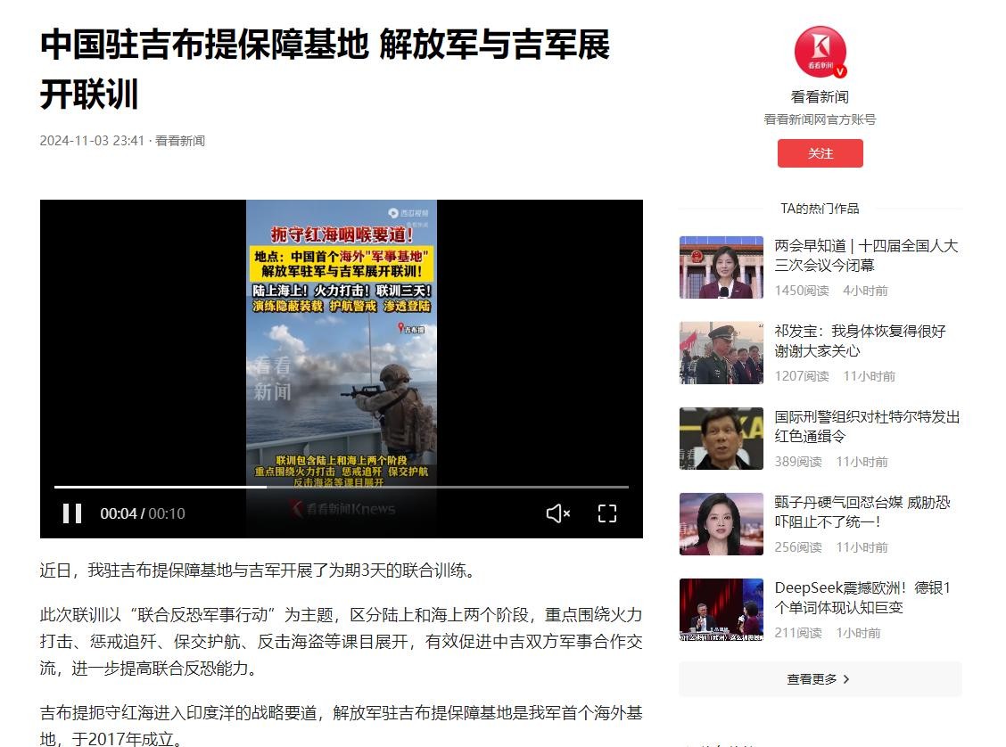 信息来源:2024-11-03 23:41·看看新闻{中国驻吉布提保障基地 解放军与吉军展开联训}