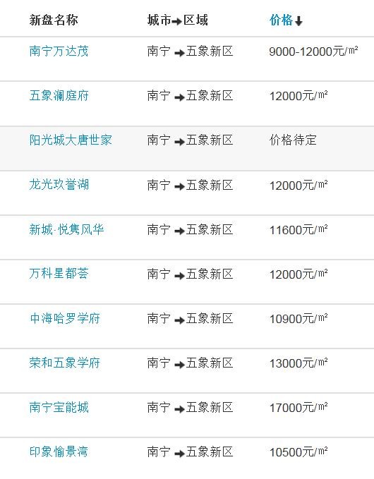五象新区热搜楼盘排行榜单出炉