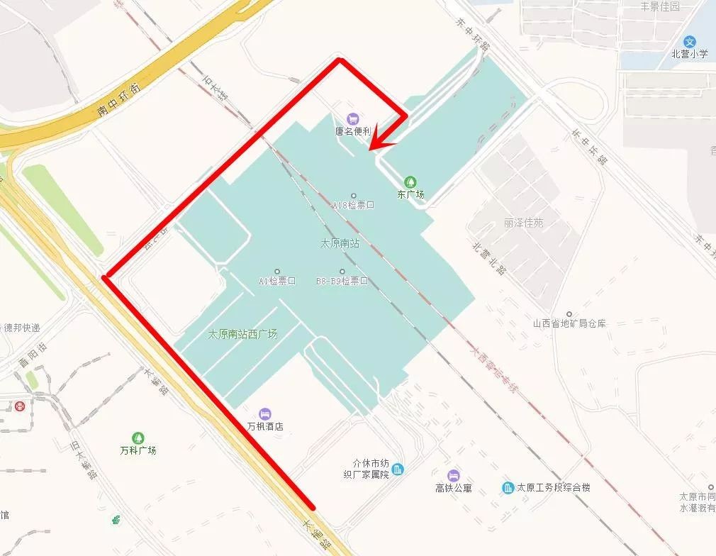 ps:从晋阳街由西向东方向出发的旅客,可途经站北街前往南站东广场哦