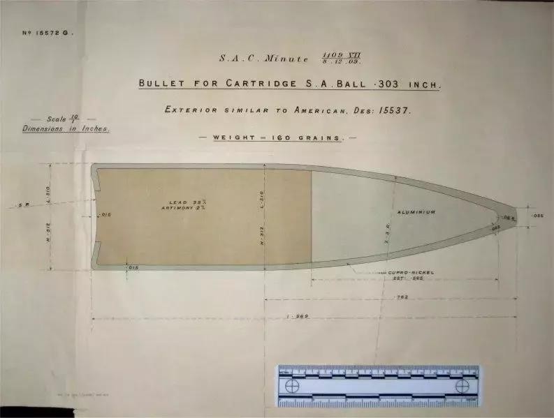 咱们知道早期无烟弹药都是圆头的,初速大概600m/s左右。而到了二十世纪初,各国都开始用上了尖头弹,比如英国.303 Mark VII。更轻,抗风阻更好,初速也更高,还有它的结构,前铝后铅,重心靠后。高速击中人体之后,后部较重的铅在惯性作用下挤压前部的铝,铝受压变平,创伤弹道增大。而且重心在后也很容易受阻翻滚,形成很大的空腔。