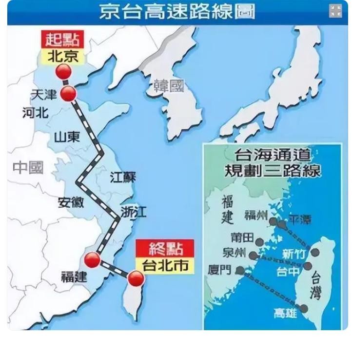 其实,在台湾民间已经早就有了“统一时间表”,其中也包括金门和马祖岛甚至台湾岛上通上煤气的“小四通”,还有从北京过福建穿金门岛台北的高铁线路,彻底实现“两岸一条心”的经贸交通大布局。