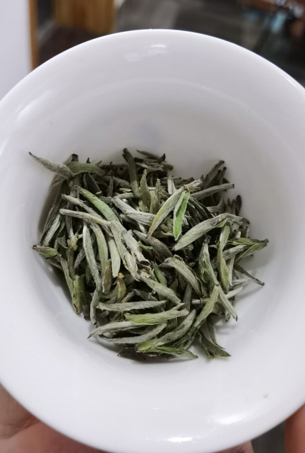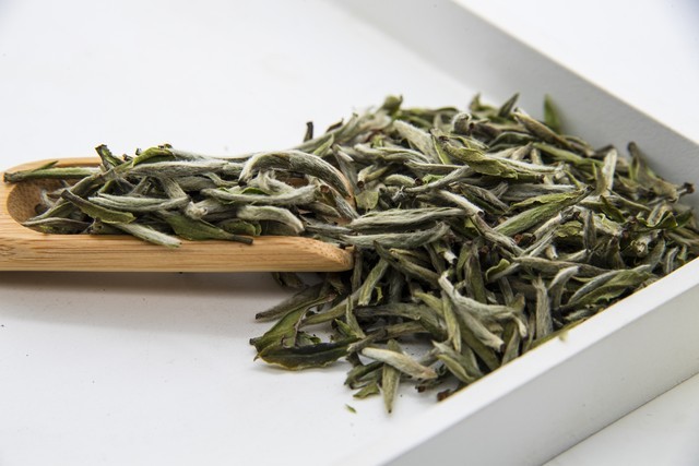 “白牡丹”茶叶,绿叶夹银白色芽心,形似花朵,冲泡后叶片衬托嫩芽,优美形态宛如蓓蕾初放的牡丹,因此得名;茶树品种和白毫银针一致,不同在于原料的嫩度。