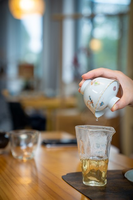 投茶:根据盖碗的大小而定,一般投茶量是盖碗容量的1/3,可以通过控制水量来掌握茶汤的浓度。