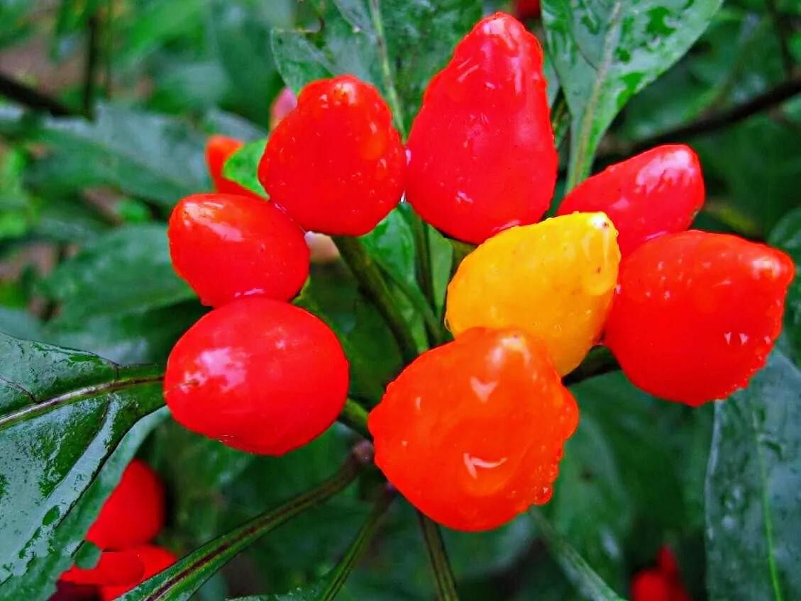五彩椒,别称:五彩辣椒、朝天椒、观赏椒、佛手椒、樱桃椒、珍珠椒等。是辣椒的变种,茄科,辣椒属多年生草本,常呈半木质化。常作一年生栽培。分布区域:中国、北美。花期5一10月,果期8-10月。