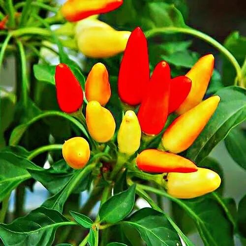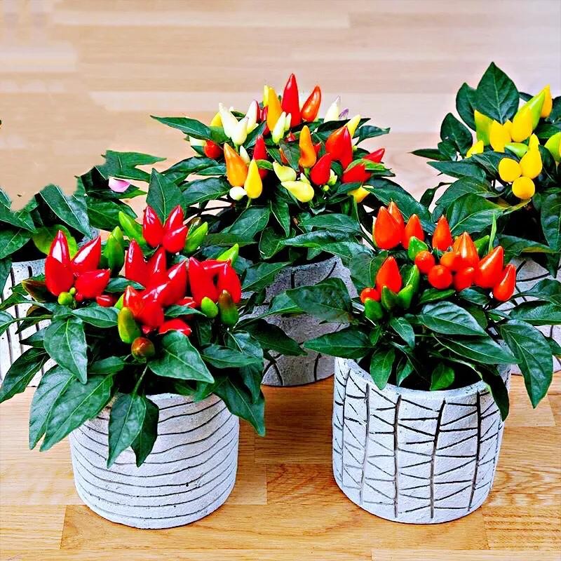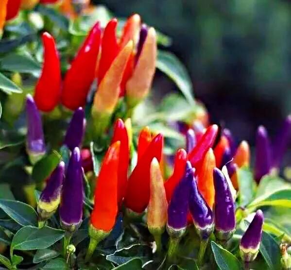 五彩椒种类繁多,常见的有:朝天类、簇生类、下垂类、灯笼类等。因其斑斓色彩点缀在绿叶之中,灵巧可爱,单株或合株培植可作绣珍盆景,室内装饰效果非常好。同时亦可食用。观赏、食用俱佳。