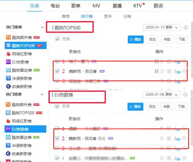 《百花香》走红后,分别在抖音、酷狗音乐、酷我音乐以及QQ音乐等音乐平台爆红,各大权威榜单位居前三,一直热度不减,包括酷狗音乐top500的前三以及抖音音乐榜榜首、QQ音乐热歌榜、雷达榜等等榜单。随时打开播放器就看到魏新雨的《百花香》,2019年不得不说就是魏新雨收获最多的一年了。