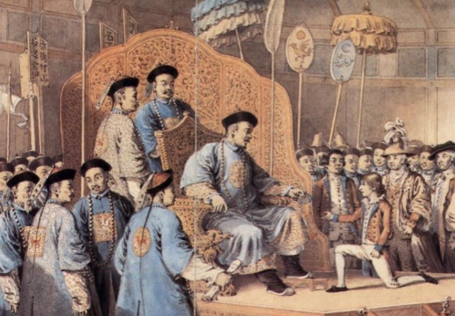 英国派出使臣马嘎尔尼等人访华,希望打开中国市场,但遭到乾隆帝的拒绝。乾隆帝认为中国不需要与外国通商。之后,英国派出使臣阿美士德,