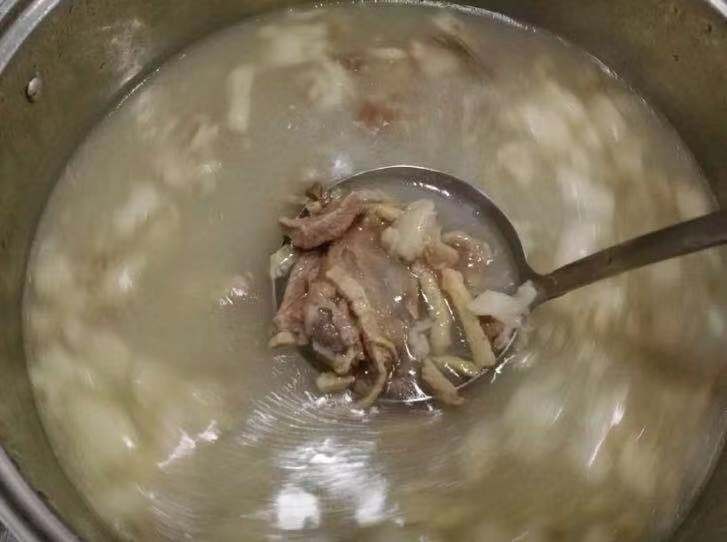 第一羊杂里面有丰富的胶原蛋白,所以加进去会让汤更浓,颜色也好看