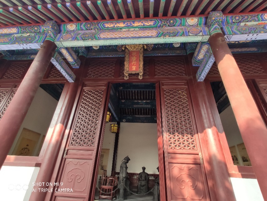 进入大门是一处大殿,大殿也做成了皇家规格,用的黄琉璃瓦,四周都有回廊,非常的漂亮。