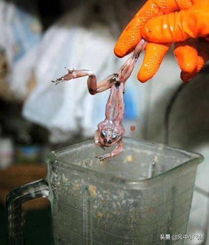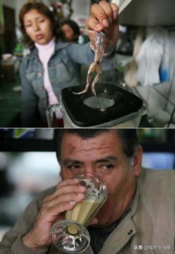 而在秘鲁首都利马,青蛙还有一种更为残忍的吃法。商家将活生生的青蛙扔进榨汁机,榨成肉泥,供顾客饮用。据称,这种"青蛙汁"在当地的工薪阶层中十分受欢迎,很多人坚信这种"饮料"能够强身健体,解除疲劳,甚至对性功能低下也有神奇的治疗效果。