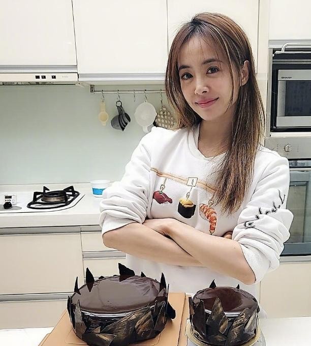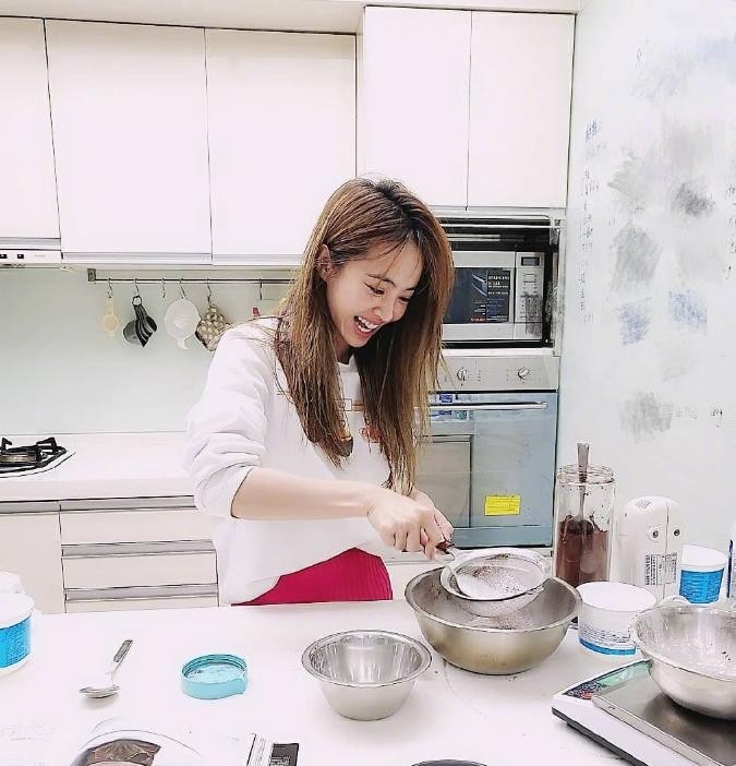 平时蔡依林在家的时候也会在料理台上做一些甜点