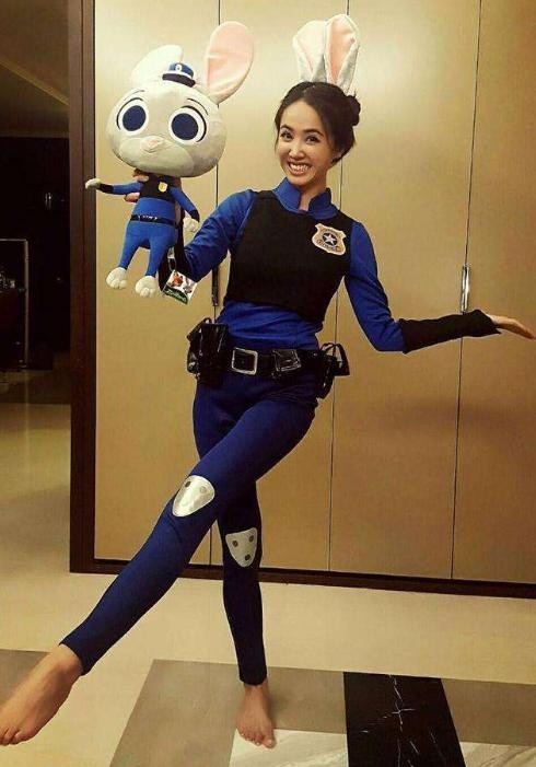 自己在家拍照的时候还会将自己打扮成兔子警官的样子