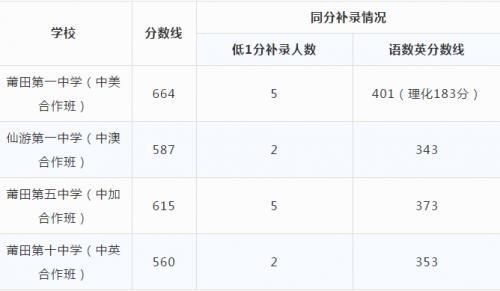 莆田市2019年中考中外合作办学录取情况汇总表