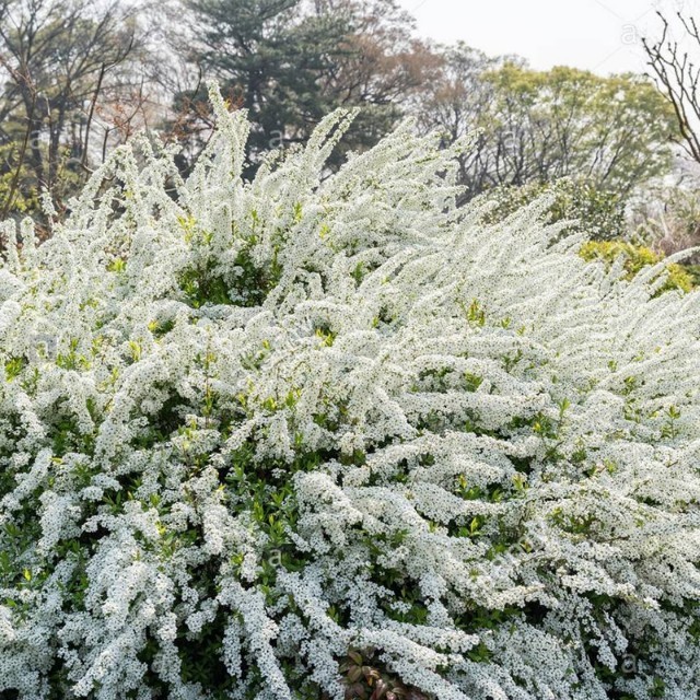 雪柳株丛丰满,枝叶清秀,清雅的白花挂满枝头而且花期很长。因其叶形似柳叶,花白如雪,所以被称为“雪柳”。开花时花朵密集,一片雪白,故又被称为“喷雪花”。