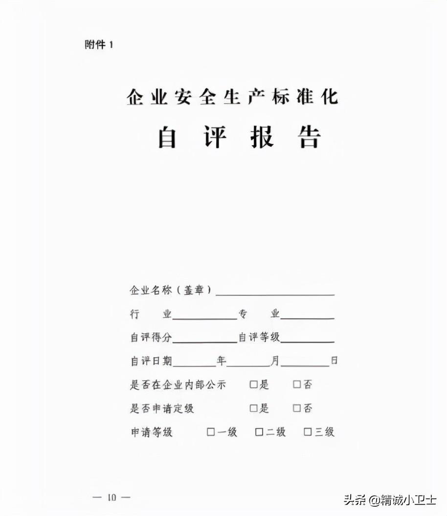 企业每年至少开展一次自评工作,并形成书面自评报告,在企业内部公示不少于10个工作日,及时整改发现的问题,持续改进安全绩效。