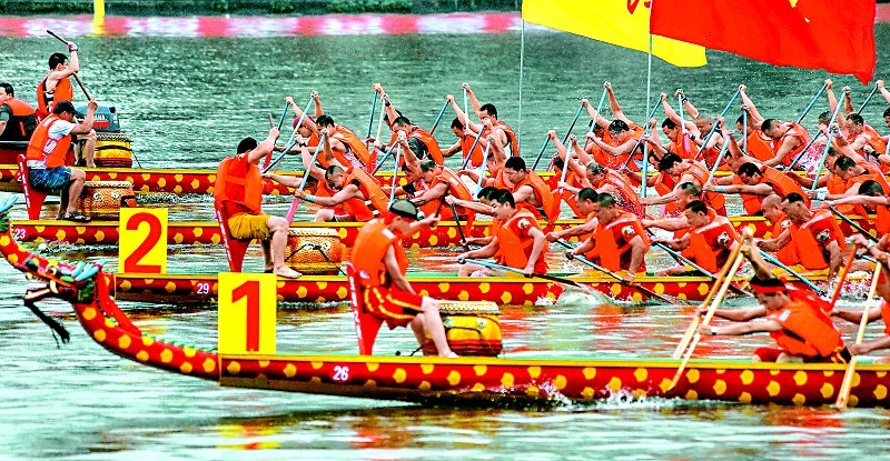 赛龙舟是端午节一项重要活动,主要流行于我国南方水乡。