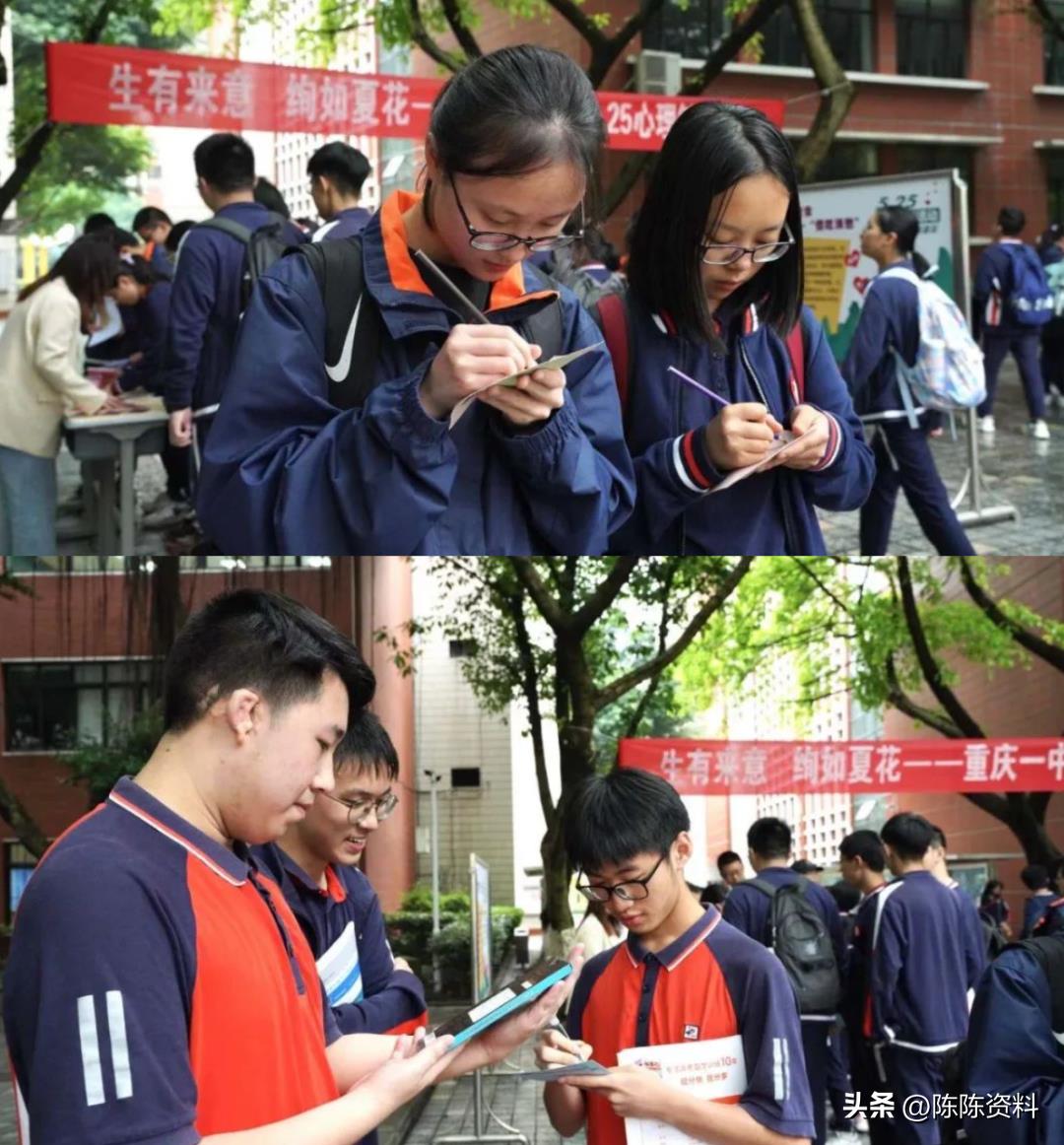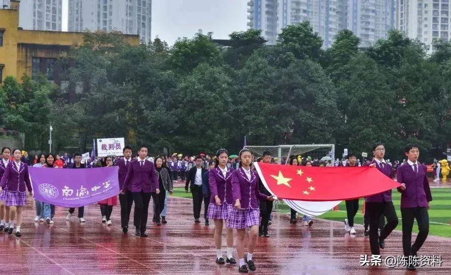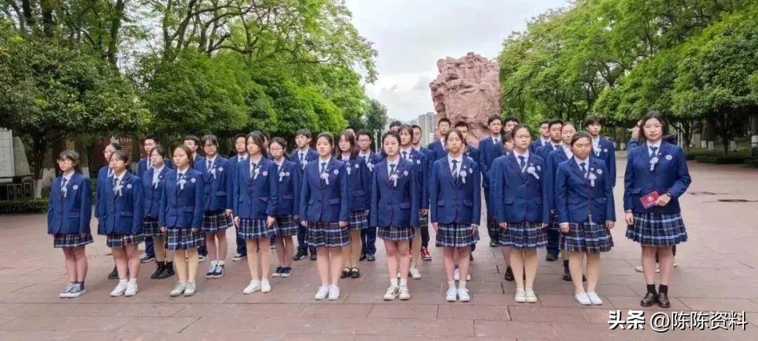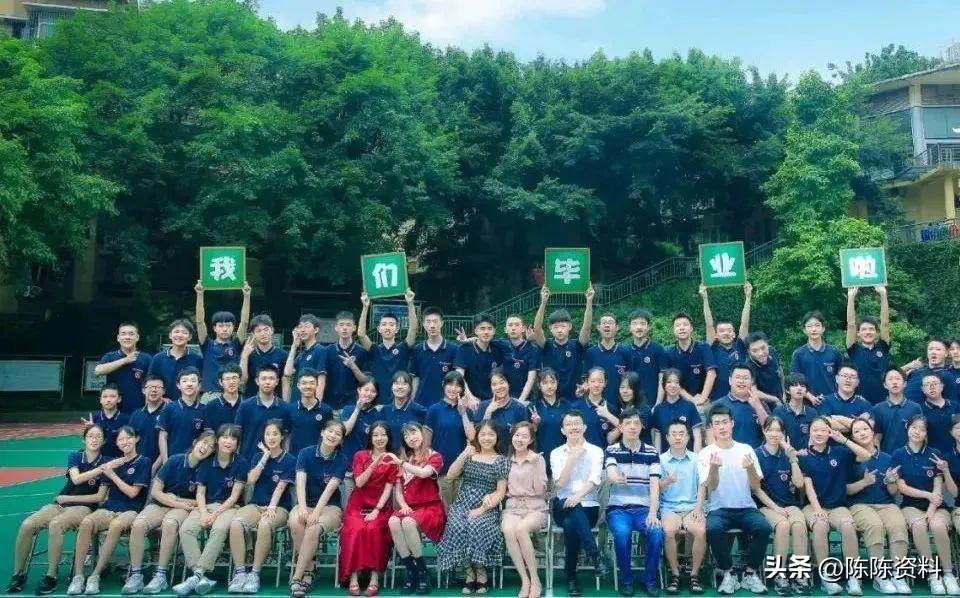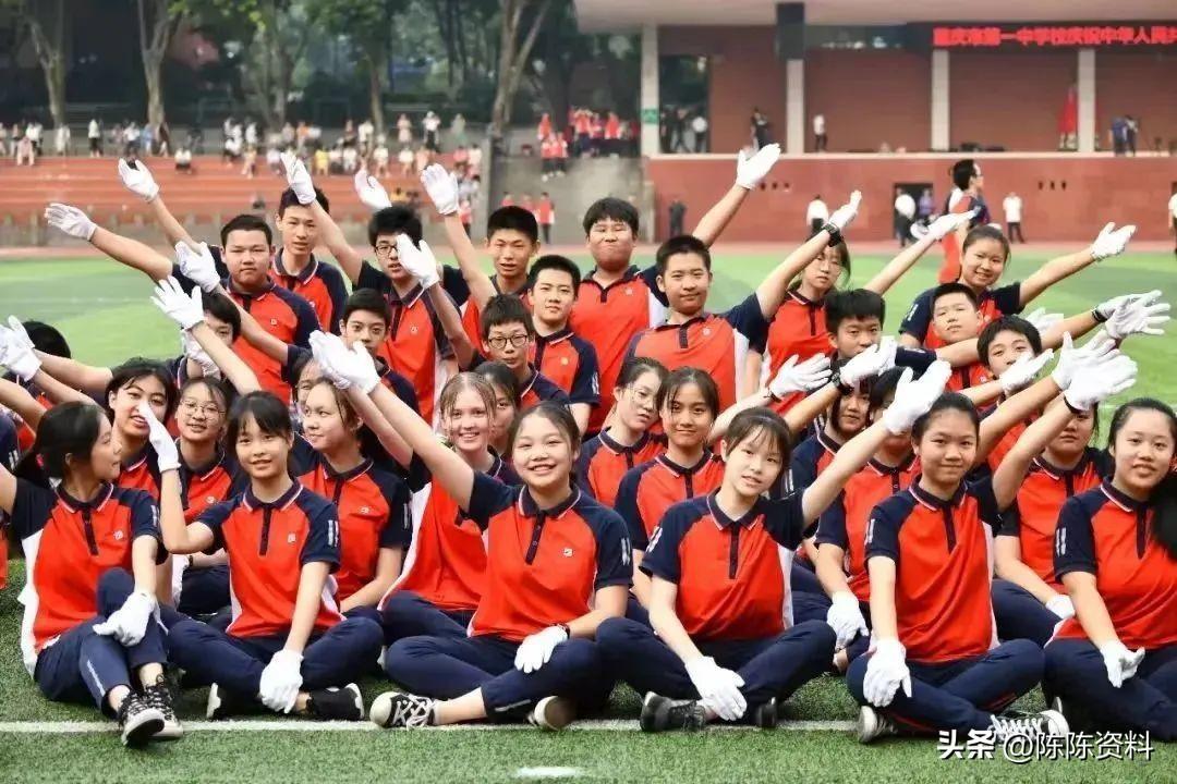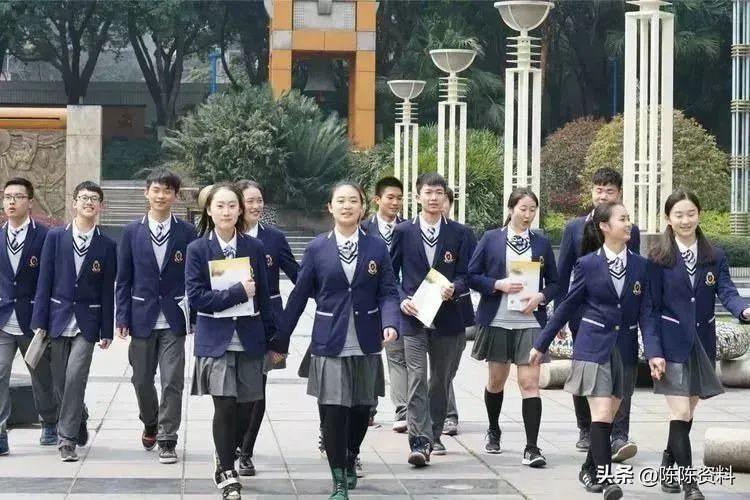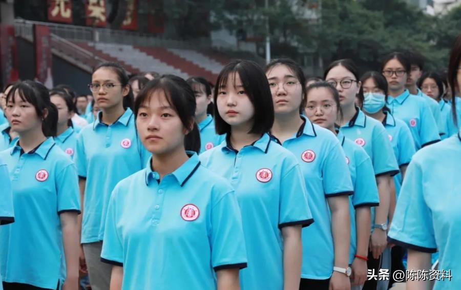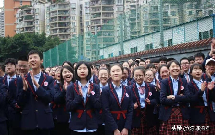 渝高中学的校服颜色以深蓝色和浅蓝色为主,稳重端庄,看上去很耐脏。