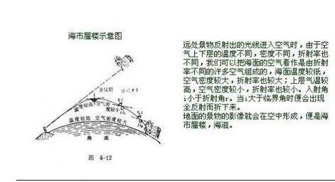 在海市蜃楼中,人们可能会看到城市中的建筑物。古人也见过类似的场面,这也是"海市蜃楼"一词的由来。但是,有些人认为海市蜃楼不是光折射现象,而是与时空裂缝或时空混乱等现象有关。驳斥这一论点实际上非常简单,因为古人看到的景象是他们那个时代的全部,而我们现在看到的景象也是现代的东西。当然,现在我们还将看到古老的建筑,因为现代和古老的建筑。如果海市蜃楼是一个时空混乱,为什么古人从来没有记录过他们看到过一个特殊的场景?