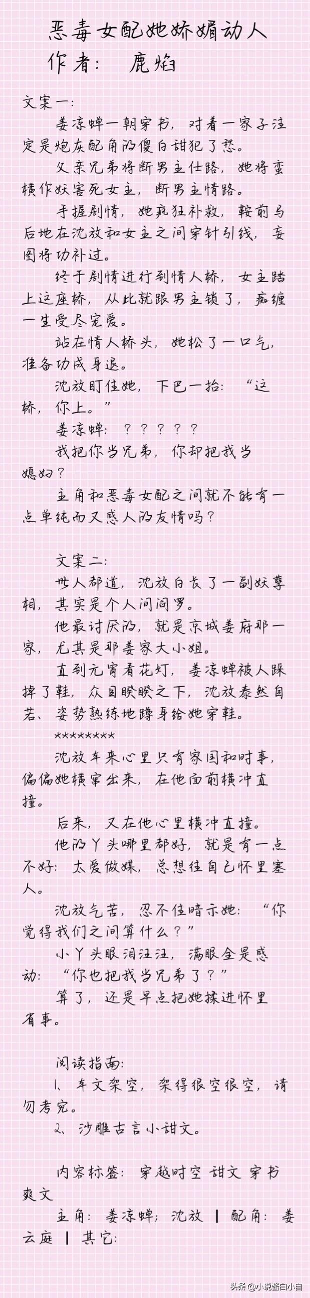 hello,大家好,今天给大家分享5篇最新完结更新的穿越小说,女配逆袭的甜文爽文,值得推荐哦。