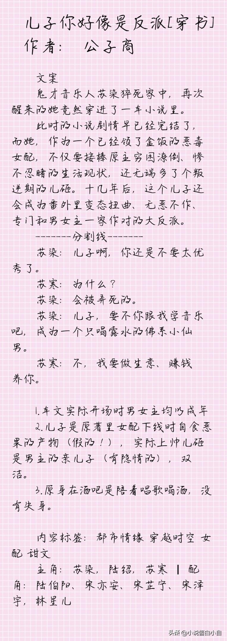 小自短评 :女主是音乐鬼才,穿越成为一个穷困潦倒,还有个叛逆期儿子的恶毒女配,为了改变这惨不忍毒的生活现状,女主决定重拾自己音乐技能,教人弹钢琴,给人写歌,改变自己被炮灰的命运,还有傲娇儿子黑化的命运,还遇了文中的大boss男主,原来帅儿子竟然是男主的亲儿子,文中有隐情,双洁甜文。