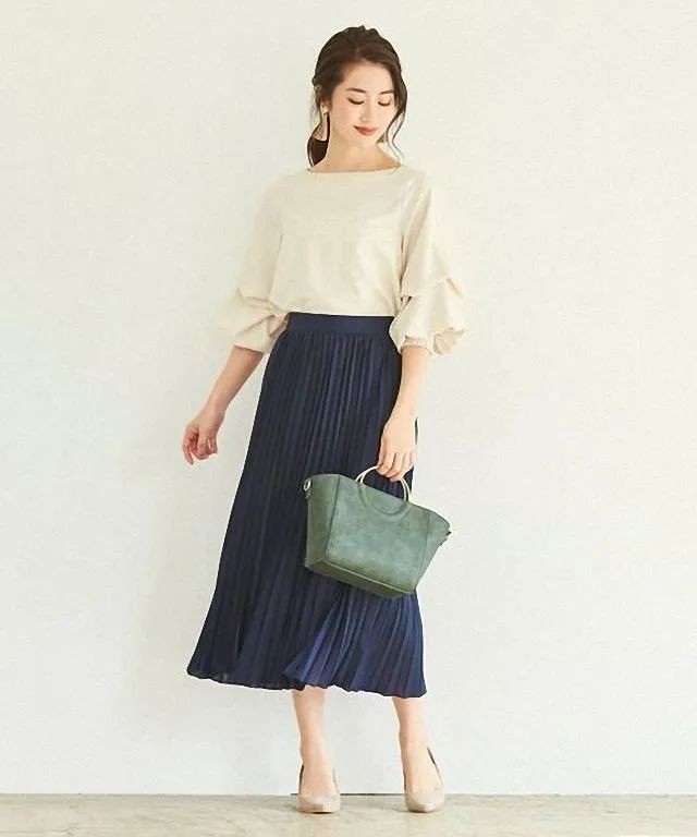 日系风格大都走简约风,尤其是上班族和30岁以上的女性,纯色百褶裙和碎花百褶裙,则是她们的首选。版型上不会有大的起伏,大都是竖版款式,配色以多以基础的纯色为主,搭配一件女士衬衣和高跟鞋,典雅有内涵,很显高级气质。