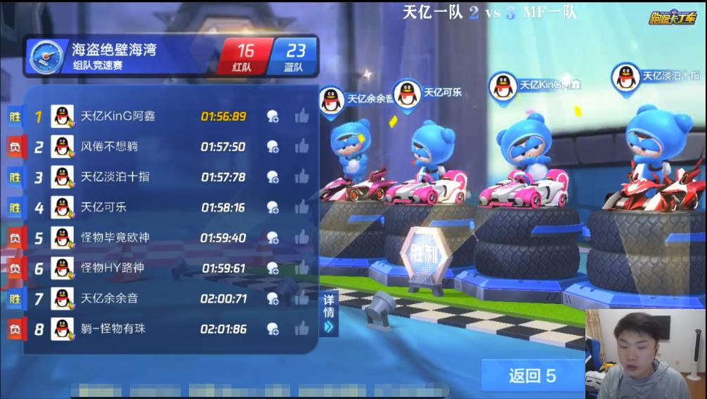 在最后一场比赛中,天亿一队以二比七的成绩落后于MF一队,这场组队竞技赛的规则是十三场七胜,因此这场比赛也是MF战队的赛点,此时天亿一队要翻盘的难度是非常大的,而虎牙阿鑫在比赛中更是遭到了对方的针对,因此结果是天亿一队战败。