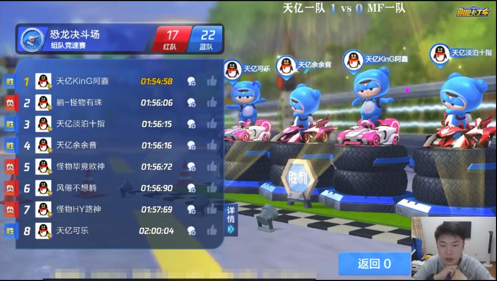在随后的四场比赛中,虎牙阿鑫基本都能获得游戏的第一名,但是组队竞技赛的规则并不是看谁获得第一名的,竞技赛的规则是通过积分的多少来判断输赢的,因此阿鑫获得第一名也只能为队伍带了十点积分,但是阿鑫的队友就非常不给力,三人都在第四名到第八名之间徘徊,因此天亿一队是以二比三的成绩落后于MF一队的。