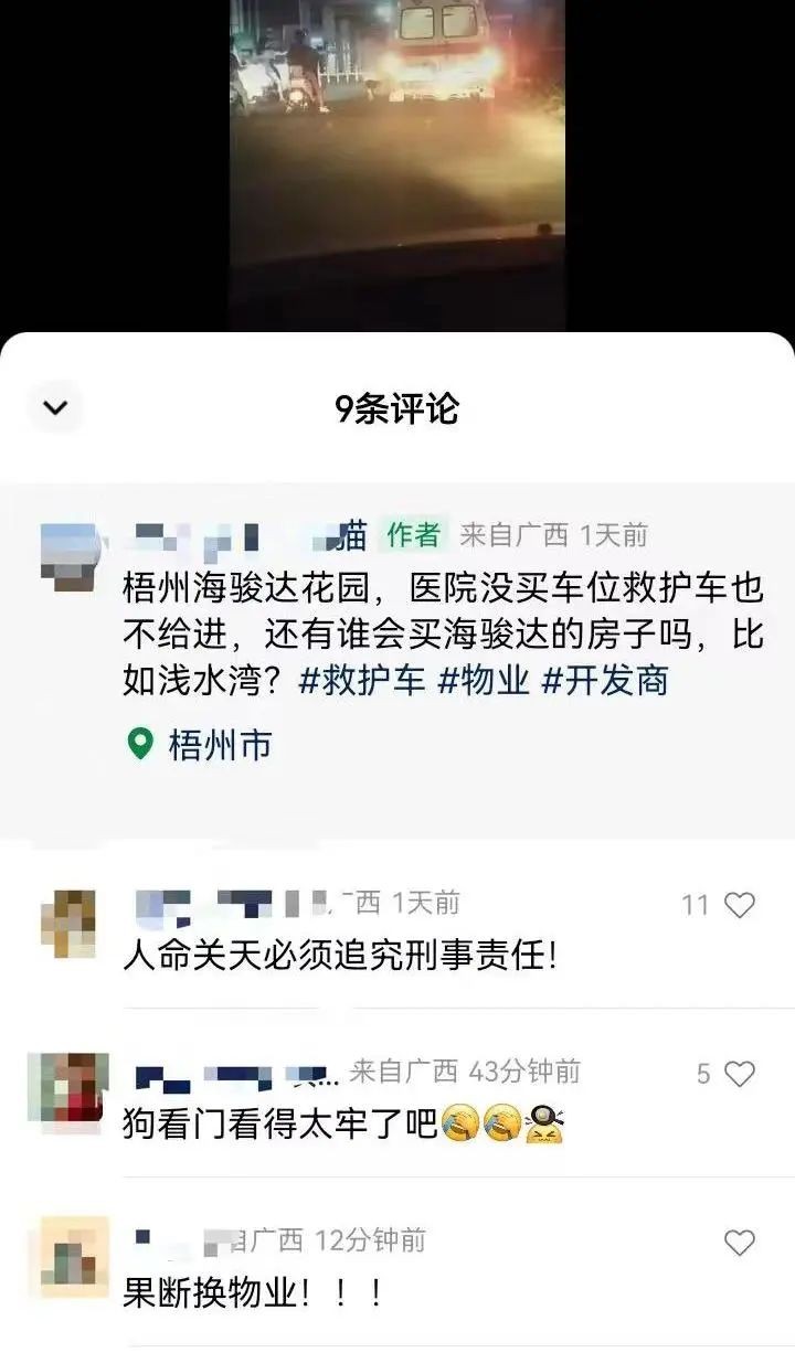 120救护车进入梧州某小区被拦?回应来了