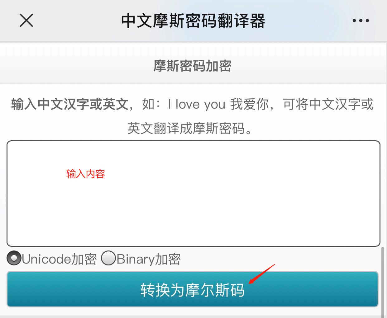 其实呢过程真的十分简单,我们只需要在"摩斯密码加密"栏的输入框内输入想要转换的文字,接着点击"转换为摩斯密码",上方就会出现转化后的结果,然后只需要"复制"发送给好友即可!