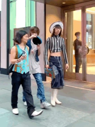 这位眼镜小哥一身露脐劲装加纱裙,搭配乳白马靴(xiē),走出了要去和陈浩南干架的架势,简直是娘man平衡的楷模。