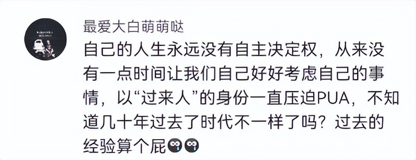 父母却不会管这些,他们觉得这一切都是为你好。如果你不听话,就是不懂事,忤逆长辈,道德捆绑你没商量。