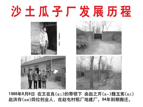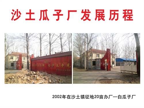 1988年,沙土食品工业有限公司董事长王在良,与三位志同道合的朋友在赵屯村租场地建厂,这就是沙土食品的最初雏形。29年来,经历了五次大搬迁,十次建厂,经过一步一个台阶的稳扎稳打,沙土瓜子逐渐实现了从无名到知名的转变。