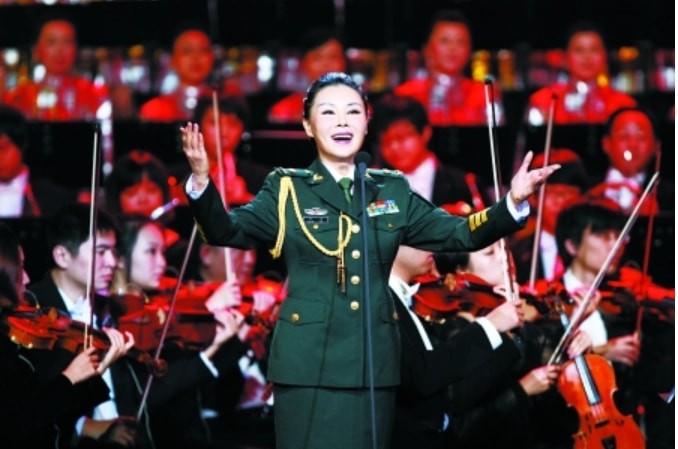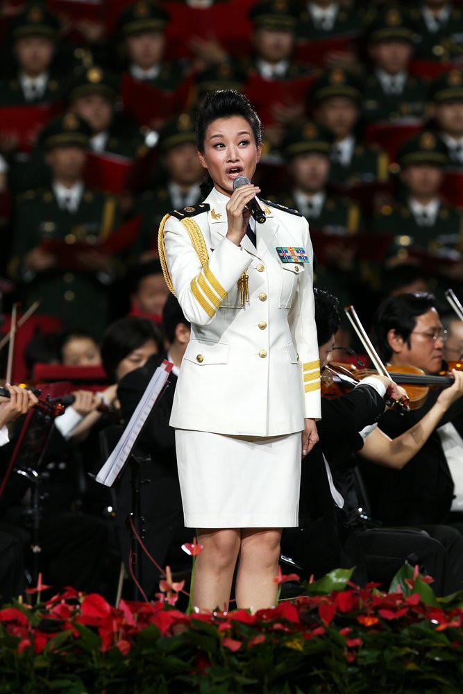 蝉联过三届中国音乐大奖赛金奖,一身戎装,站在舞台上,