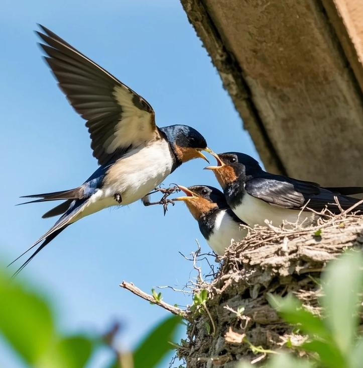 经过三十天的辛勤付出,雏燕逐渐长大,羽翼丰满,最终离开巢穴,随风四散飞。而燕子父母却只能在空巢里悲啼,思念着远方的孩子。