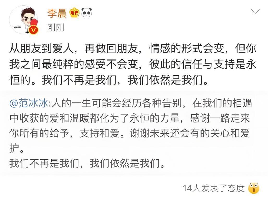 李晨和范冰冰的恋情从“我们”开始,又以“我们”结束。