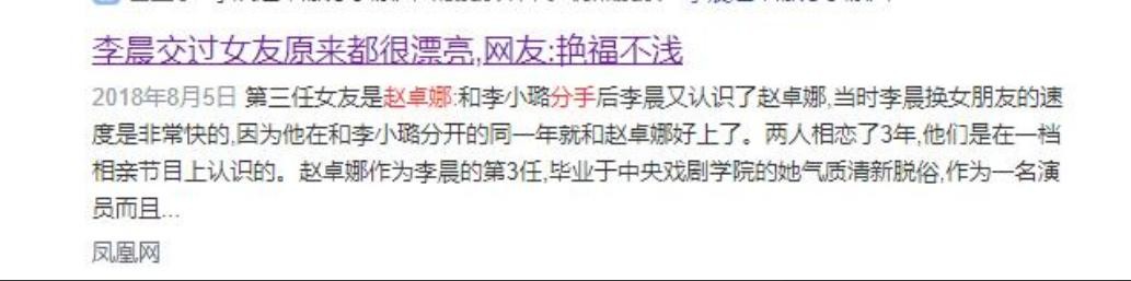 凤凰网——2018年8月5日——李晨交过女友原来都很漂亮,网友:艳福不浅