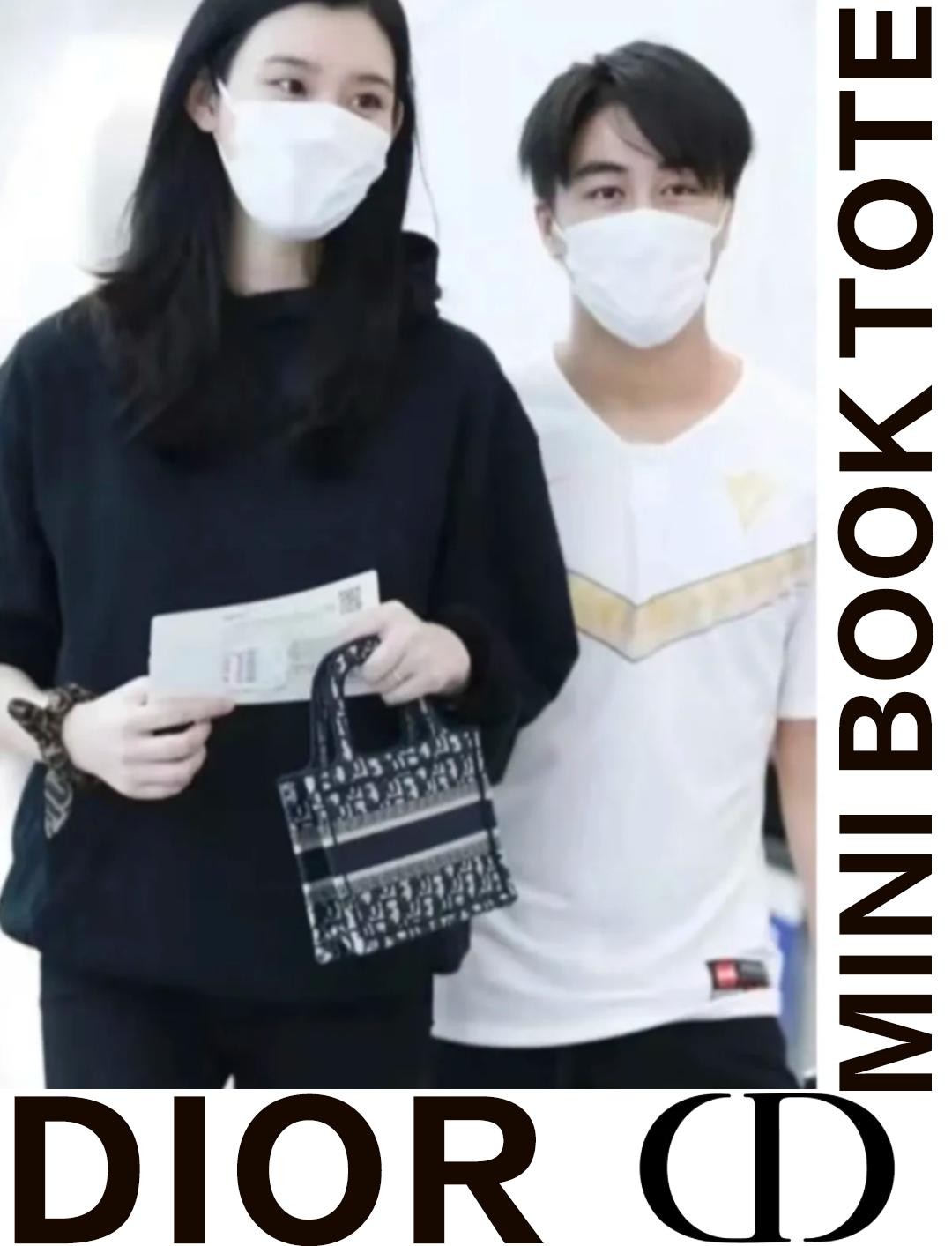 一直以来的大热门,Dior刺绣托特包,奚梦瑶也爱拎Mini的,方方正正的包型,蓝色 Oblique 印花经典耐看,这只包尺寸虽然迷你,放个手机,拍照凹造型也足够了。