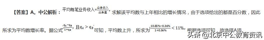 【答案】A。中公解析:根据比重变化的核心结论可知,若部分增长率大于整体增长率,则所占比重上升;反之下降。根据文字材料可知,2017年,全国民航旅客运输量比上年增长13.0%,国内航线旅客运输量增长13.7%>13.0%,比重上升;港澳台航线旅客运输量增长4.3%<13.0%,比重下降;国际航线旅客运输量增长7.4%<13.0%,比重下降。因此比重高于上年水平的仅有①,故选择A项。