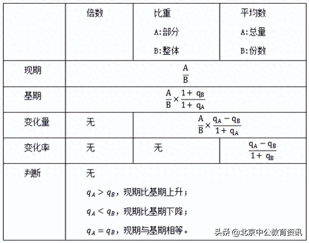 在两数之比中倍数、比重和平均数都有很多的公式,这些公式在应用时比较容易混淆,下面我们一起总结一下这些公式的基本形式,把考试涉及较多的,且相同形式的公式总结出来,降低难度,减少记忆量。