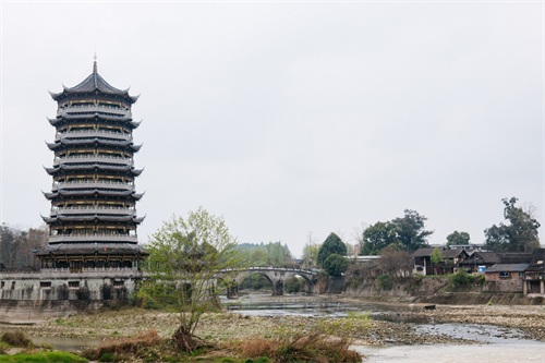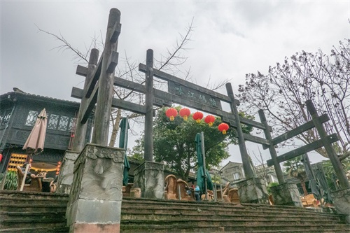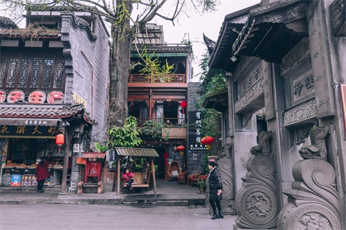 街子古镇沿袭了低瓦檐、木门板、青石路的典型川西古镇构成,与其他古镇的不同之处就是它水系发达,地下水也非常丰富,常年清水不断,因此被称为“川西水乡”。
