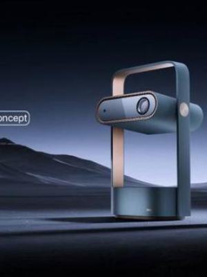 2023年初,另一家智能投影领先品牌峰米,亦发布了类似的概念机S5 Rolling。峰米S5 Rolling采用全新的框架形态,以一个圆角矩形的框架和云台结构与投影仪测评主体相连接,使得投影可以实现360度的纵向旋转。当投影仪闭合时,整机可转变为一个悬空式桌面音响;同时,底部位置还支持无线充电功能,平时可放置一些支持无线充电的设备;360度旋转亦满足不同投射位置和角度的自由悬停,整体设计十分精妙简洁。