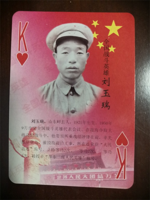 6、刘玉瑞,山东峄县人,1921年出生,1950年,出席全国战斗英雄代表会议。在渡海“大练岛连”称号。立特等功2次、一等功2次,三等功3次,被授予“华东二级人民英雄”称号。