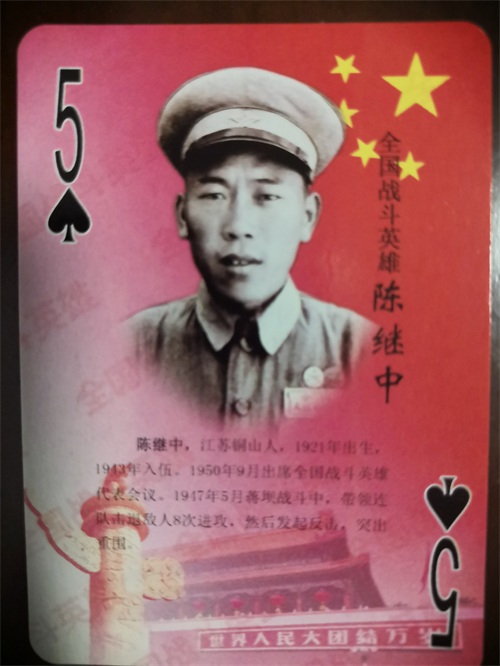 3、陈继中,江苏铜山人,1921年出生,1943年入伍,1950年出席全国战斗英雄代表大会。1947年5月蒋坝战斗中,带领连队击退敌人8次进攻,然后发起反击,突出重围。
