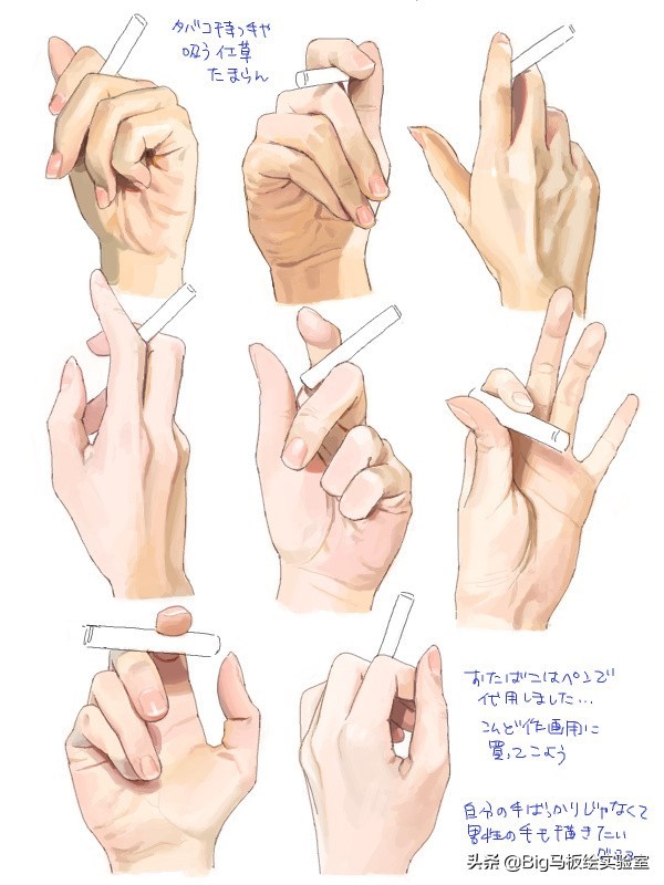 接下来再看看手拿烟的形态角度: