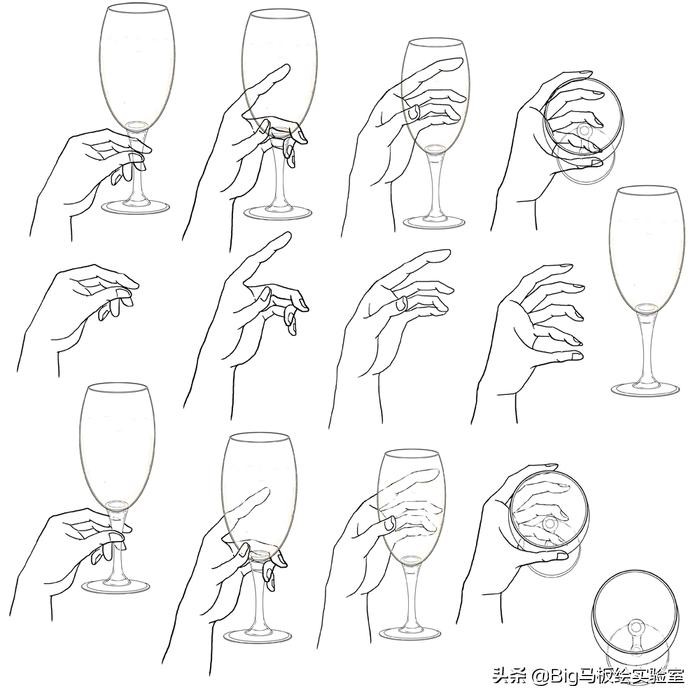 手拿高脚杯的各种角度,喝水时手的摆动位置分解图: