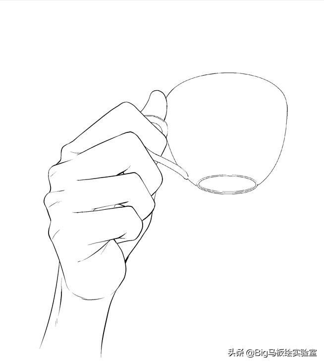 手拿杯子线稿: