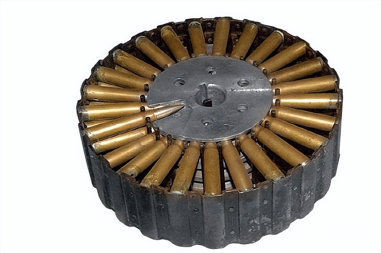 它全枪长1283毫米,空枪重11.8公斤,供弹方式: 47发或97发弹盘。