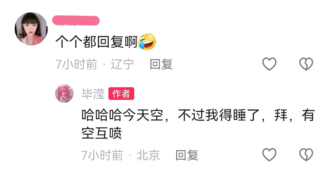 看到她有问必回的辛勤劲儿,大家都纳闷,为何今天愿意放低姿态,和大家互动了?毕滢也回复道今天空,能互喷。